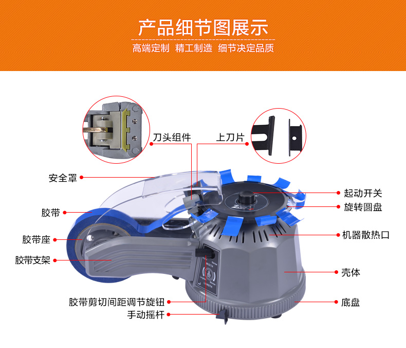 1.全自動(dòng)與半自動(dòng)裁切雙模式選擇 2.數(shù)字精確控制切割長(zhǎng)度 3.可供多人同時(shí)使用 4.能另配附件可使膠帶**切割長(zhǎng)度增至 9999mm