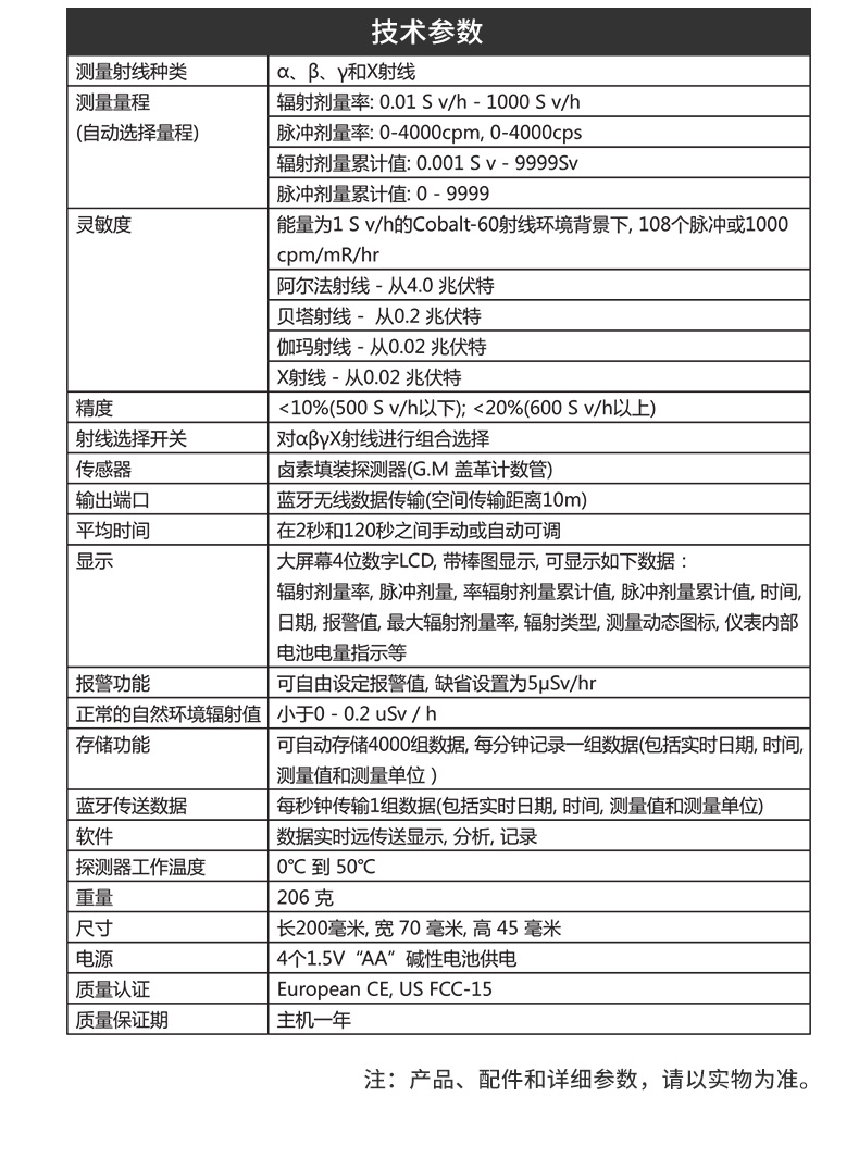 測量量程 | 輻射劑量率:0.01u Sv/h-1000u Sv/h |