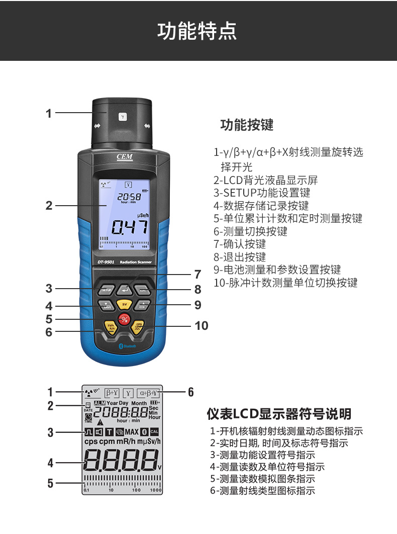 CEM華盛昌多功能核輻射檢測儀DT-9501技術參數(shù)