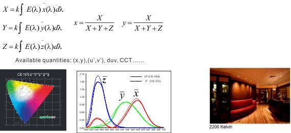 ● 相關(guān)色溫 (CCT) ● CIE 1931, 1960及1976色坐標(biāo) ● 色容差 (SDCM)
