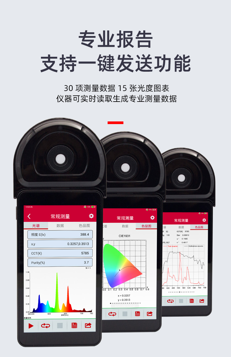 光譜、輻射度、光度、色度及植物光度等毫秒級(jí)智能測量分析,快捷高效。
