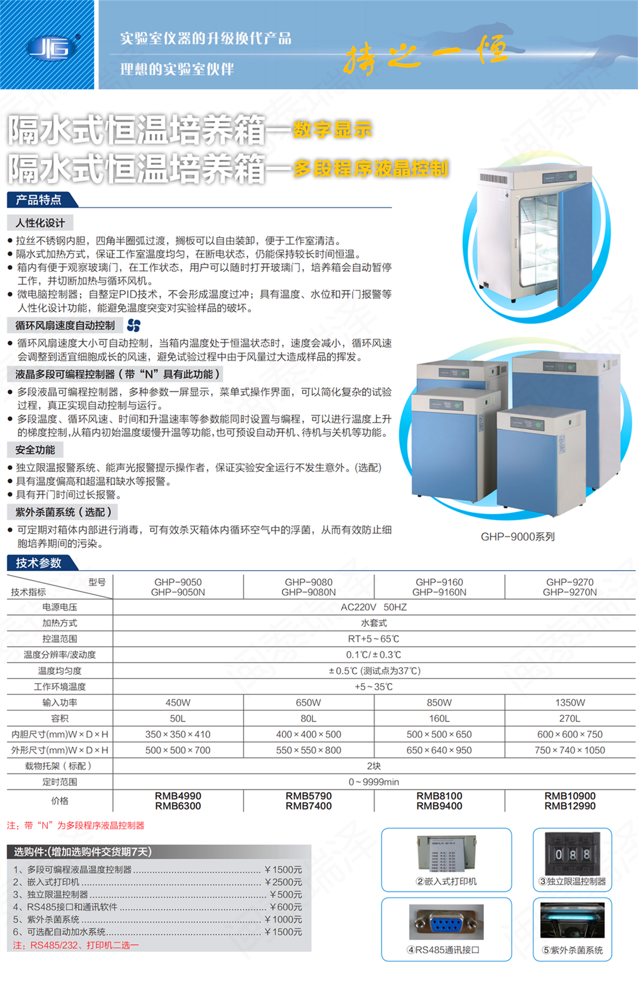 一恒隔水式電熱恒溫培養箱GHP-9050/9080/9160/9270N選購件:(增加選購件交貨期7天)