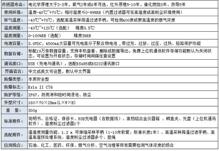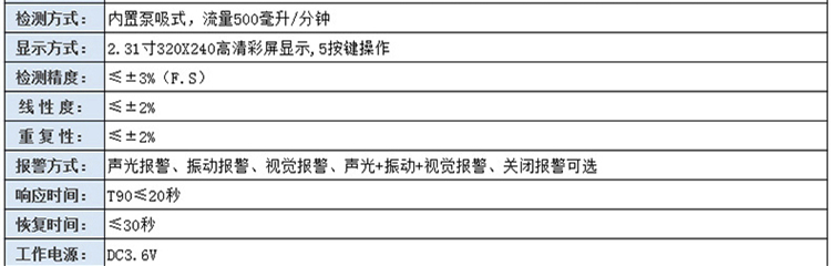 檢測范圍:0~100ppm、1000、2000、10000、20000ppm、100%LEL、100%Vol可選,其他量程可訂制