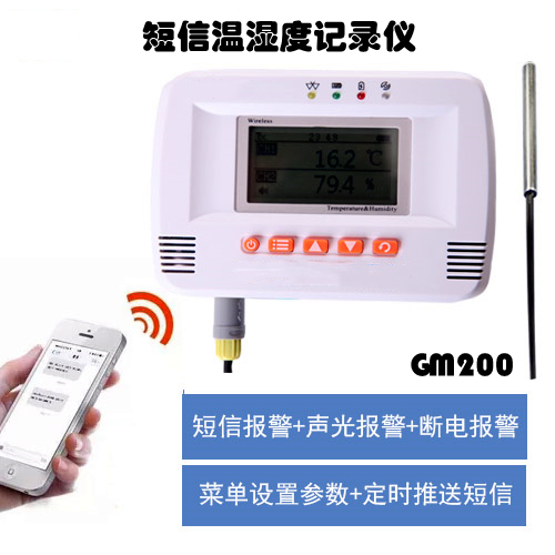 短信溫濕度記錄儀GM200在原來記錄儀基礎上增加短信報警功能。用戶可以通過任意一臺手機來查詢溫濕度記錄儀的數據。而且,一旦溫濕度測量值超過設定的范圍,溫濕度記錄儀講發送報警信息到指定的用戶。