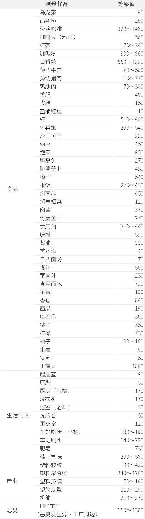 以下為氣味傳感器檢測各種樣品的案例,供客戶測量結果查詢用。