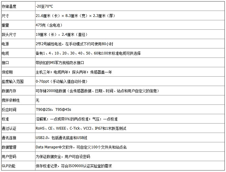 美國YSI ProODO光學溶解氧測量儀規格參數