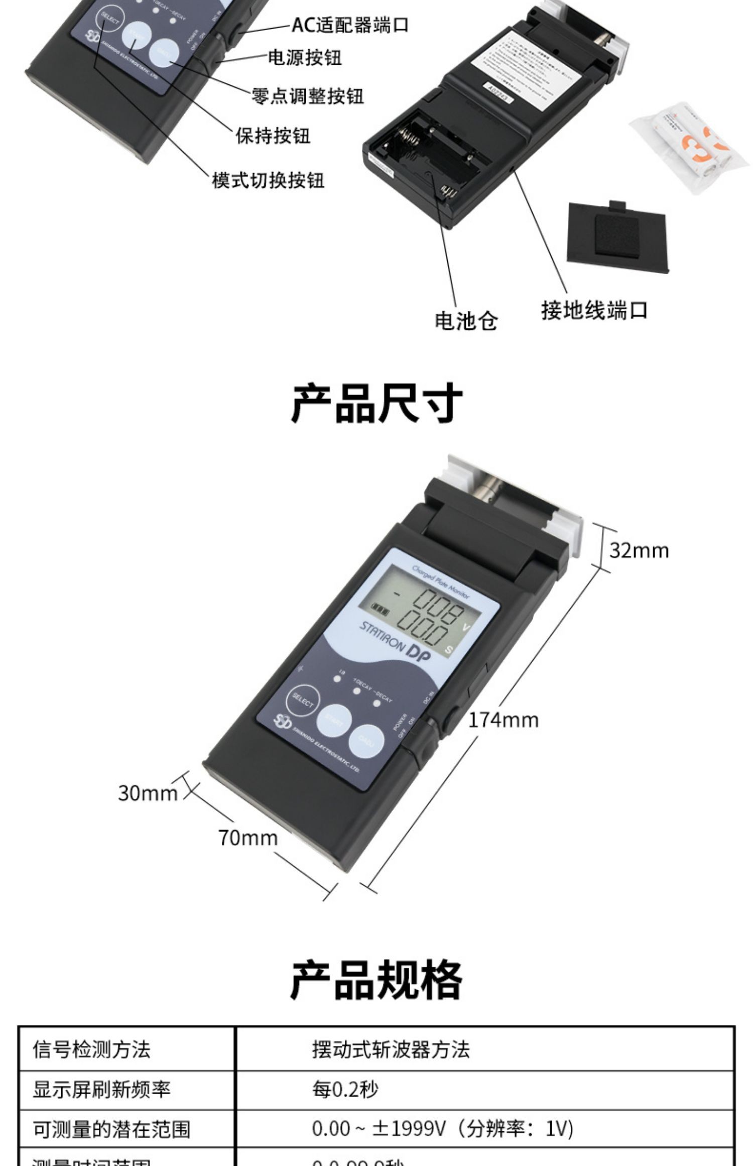日本SSD STATIRON DP靜電衰減測定儀是一種可應用于金屬板測量衰減時間并檢查離子發生器的電荷去除性能的產品,作為CPM。