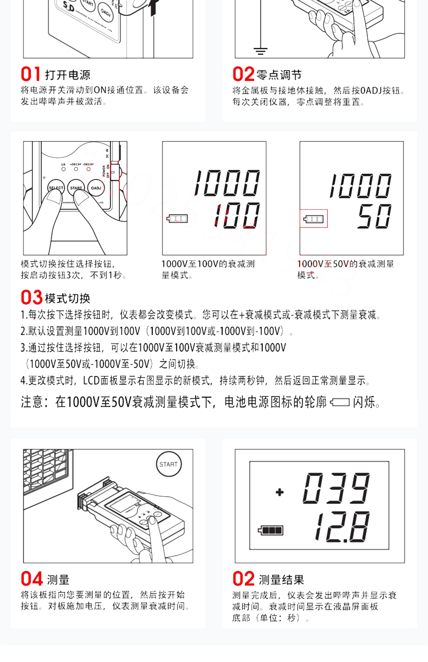 衰減測量模式(兩種) ±1000V→100V,±1000V的→±50V