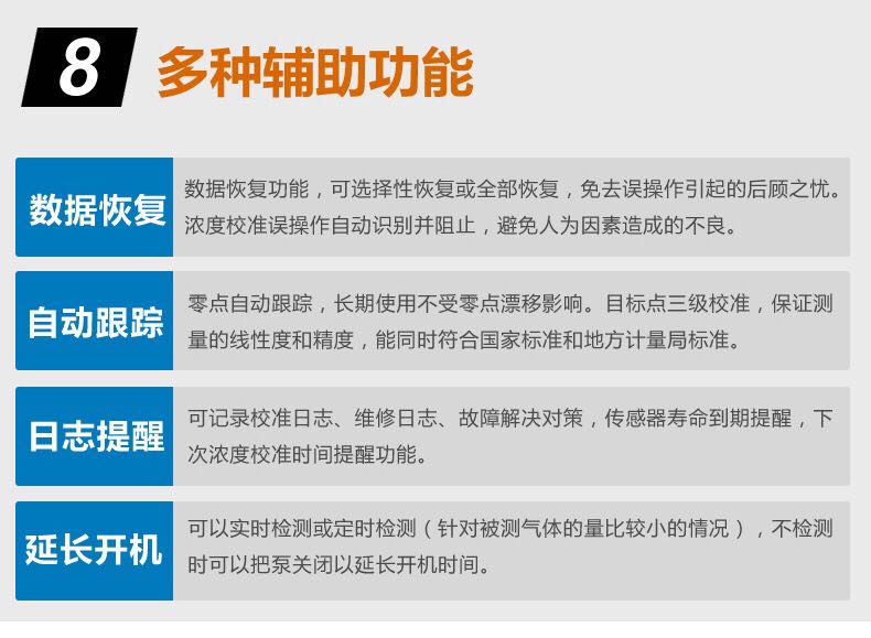 傳感器壽命:電化學(xué)2-3年、催化燃燒2-3年、紅外5-10年、PID光離子10000小時(shí)