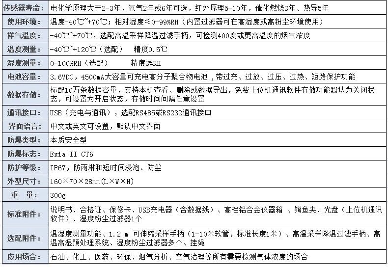 樣氣溫度:-40℃~+70℃ ,選配高溫采樣降溫過濾手柄,可檢測(cè)400度或更高溫度的煙氣濃度