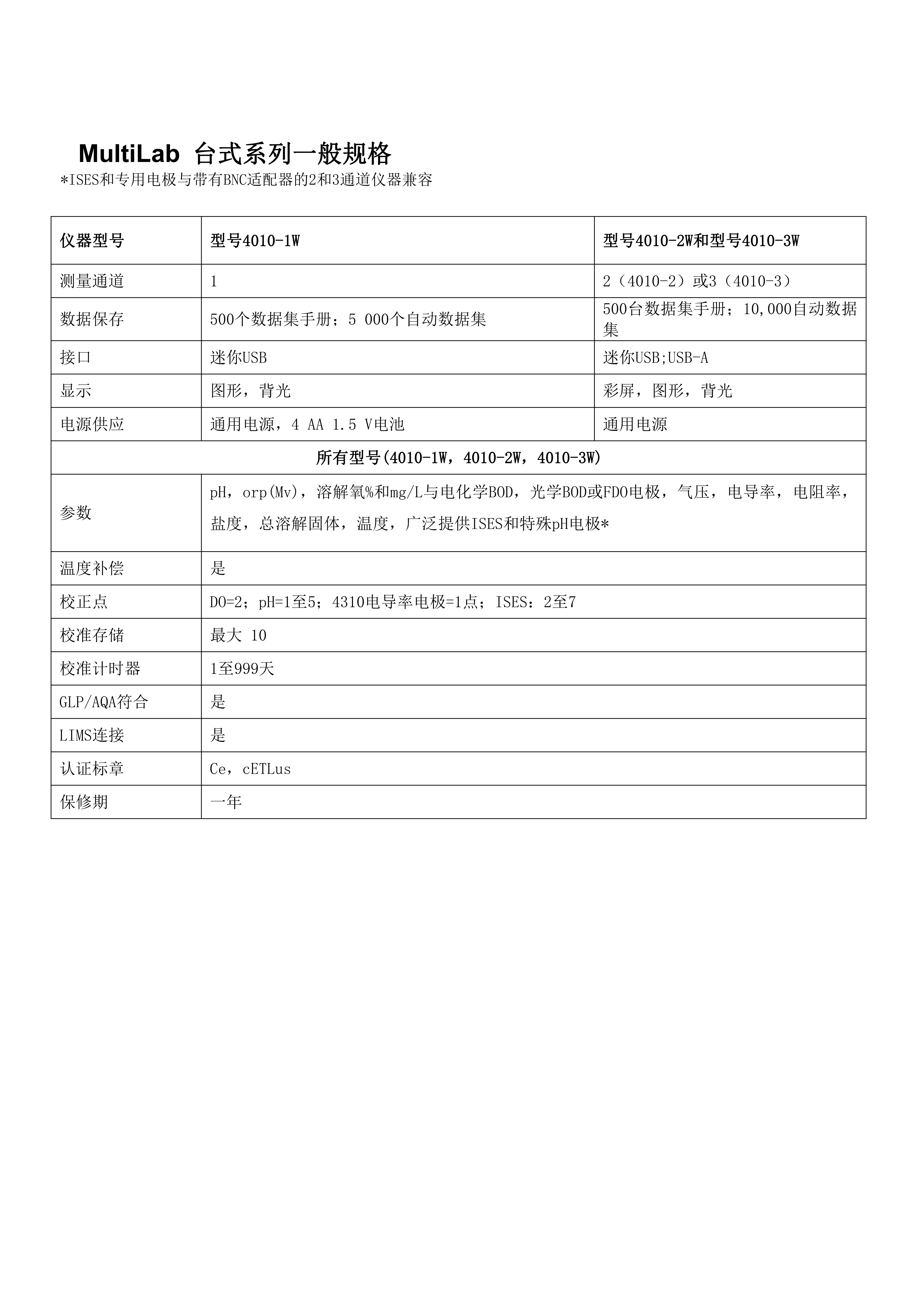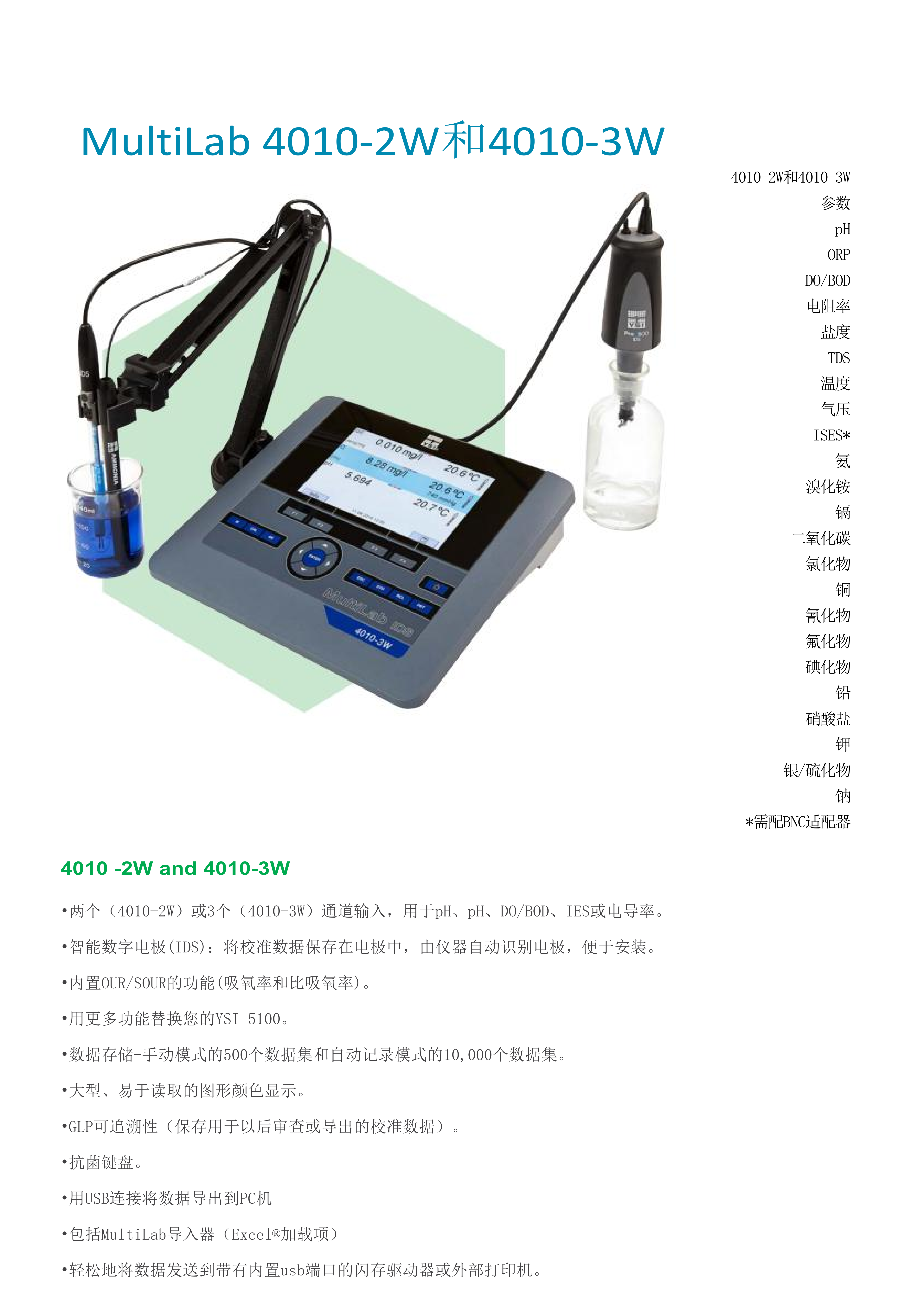 美國YSI實驗室臺式多參數分析儀MultiLab401-3W技術參數