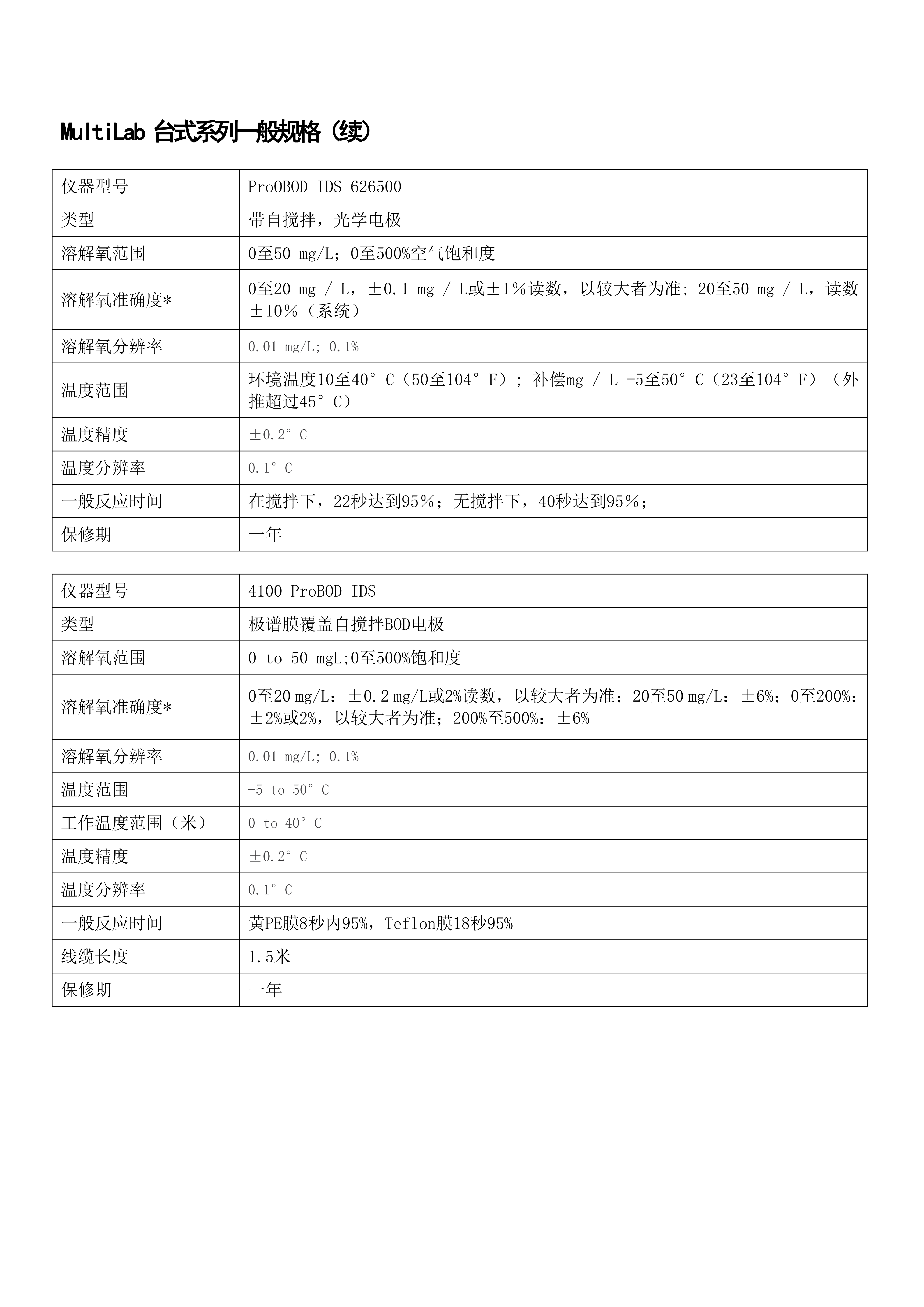 DO:0-50毫克/升,0-20毫克/升;讀數之±2%或0.2毫克/升,以較大者為準;