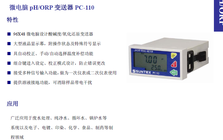 測量范圍 pH:0.00~+14.00 pH ,ORP:-1999~+1999mV