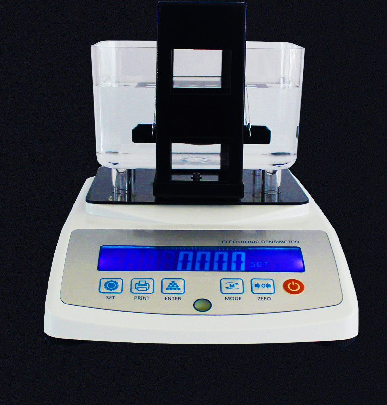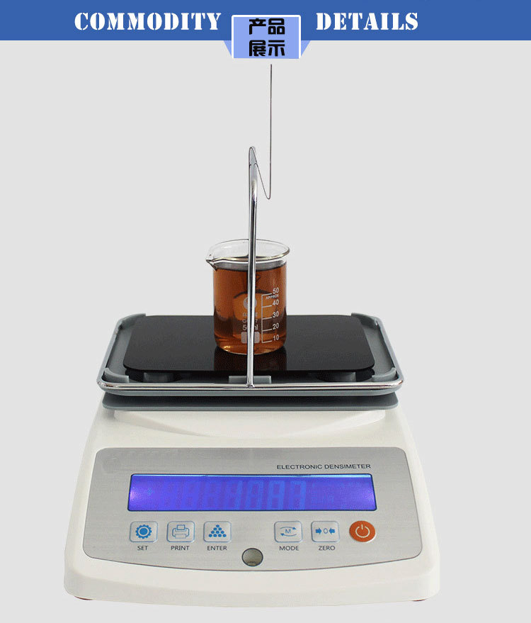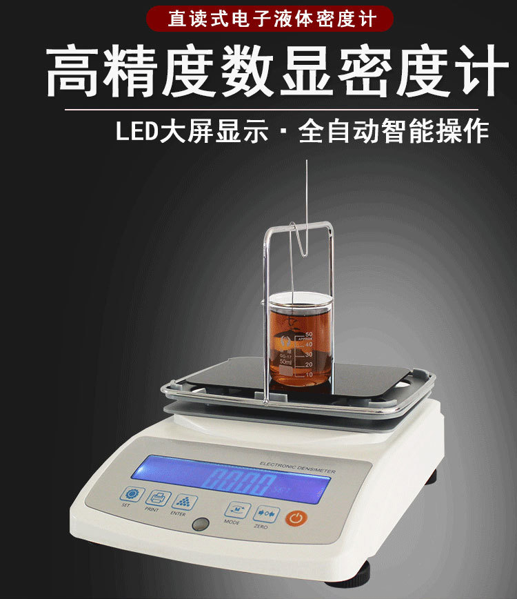 原理:根據GB/T13531、T5526、T5009、ASTM、JIS、ISO規范。應用阿基米得原理的浮力法、水中置換法,快速讀取液體密度。