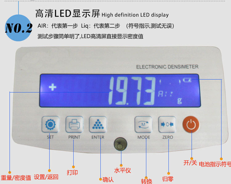 2. 具有密度上、下限功能,可判定待測物的比重合格與否。設有蜂鳴器裝置