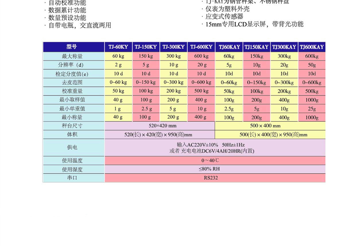 計數臺秤TJ-600KY技術參數