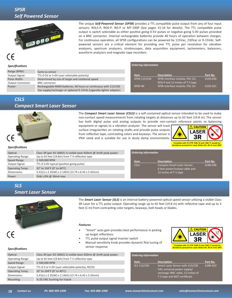激光轉速傳感器CSLS是一款小型智能激光傳感器 ,可接觸測量旋轉目標轉速,至大測量距離可達19.8m,該傳感器可提供數字脈沖信號輸出或模擬信號輸出到平衡機和振動分析儀等設備。CSLS傳感器通過反光條或顏色明暗對比的目標反射獲取信號。該傳感器具有IP64級防護水平,可在潮濕和粉塵環境中使用,包含1/4-20UNC三角安裝支架。