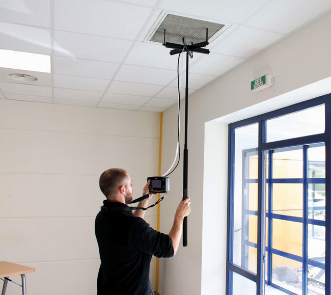 ●矩陣式風(fēng)速探頭固定在一個(gè)伸縮式延長(zhǎng)桿上(伸展**長(zhǎng)度2.05米),探頭角度可根據(jù)需要轉(zhuǎn)動(dòng)(0-90°),3種長(zhǎng)度不同的定位支柱可以保證矩陣在測(cè)量工作面的準(zhǔn)確定位。