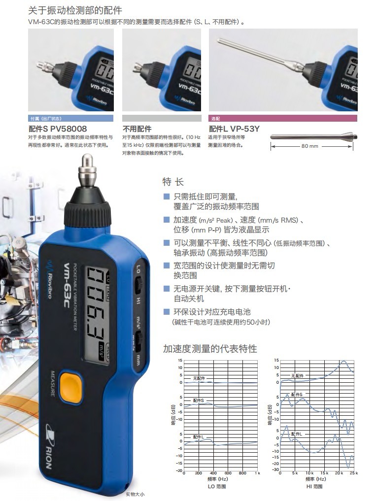 A測量范圍: 加速度:0.1~199.9m/s2 peak(RMS×1.414)