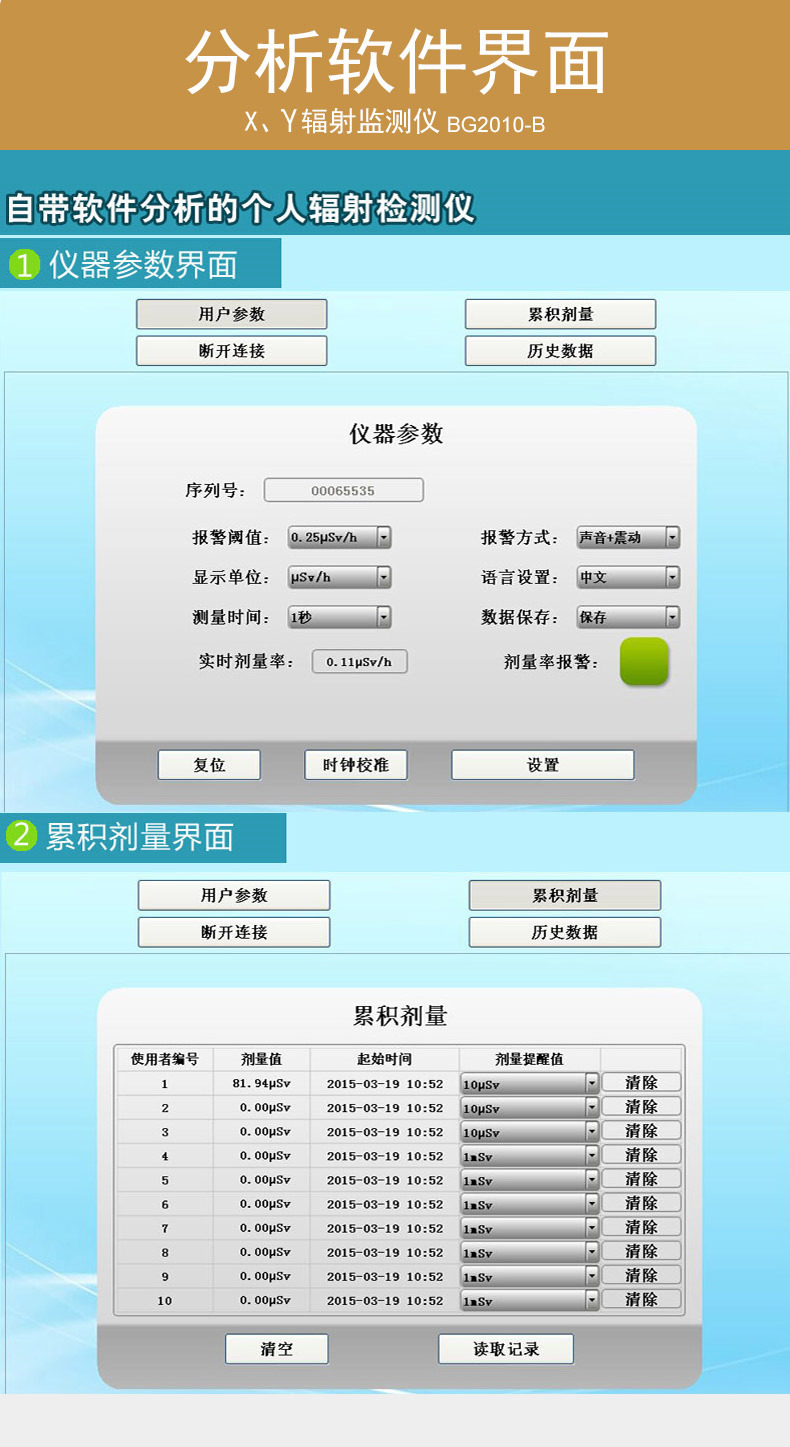 3. 具有超劑量(率)闕值報警、提醒功能;