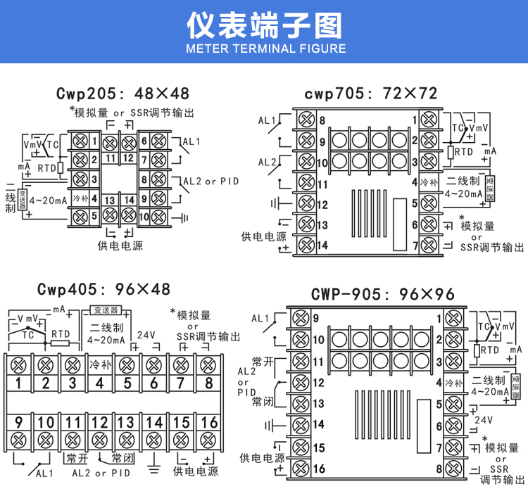 線性電流:4-20mA、0-10mA、等(輸入阻抗<250Q)