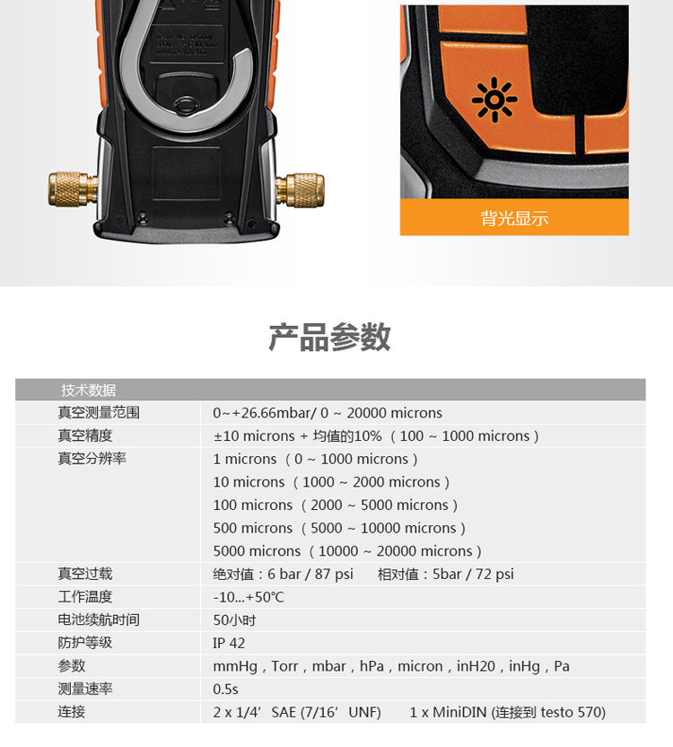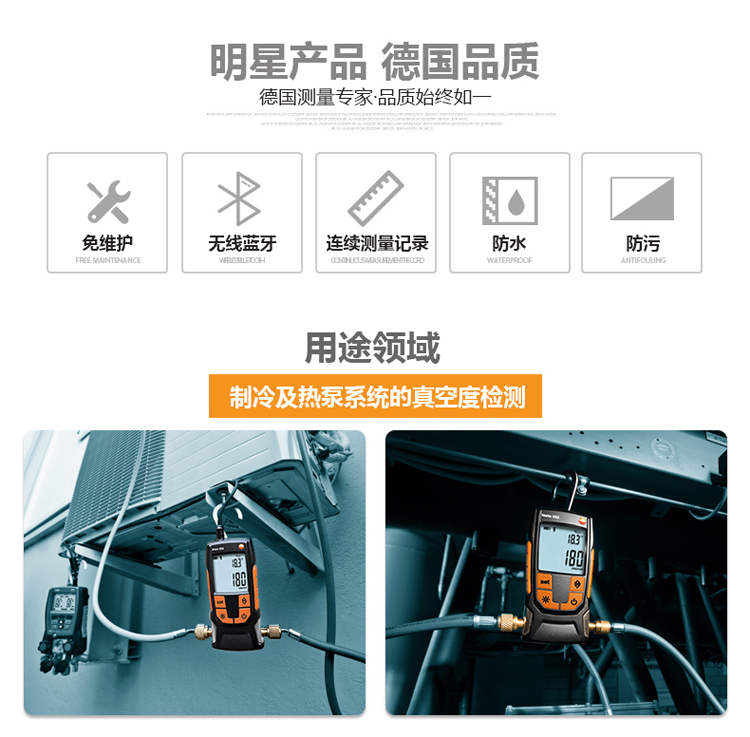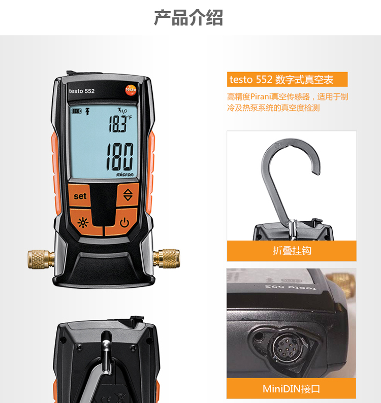 可作為外置真空探頭連接專業級冷媒表testo 570