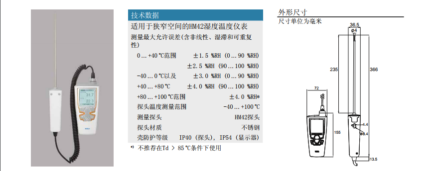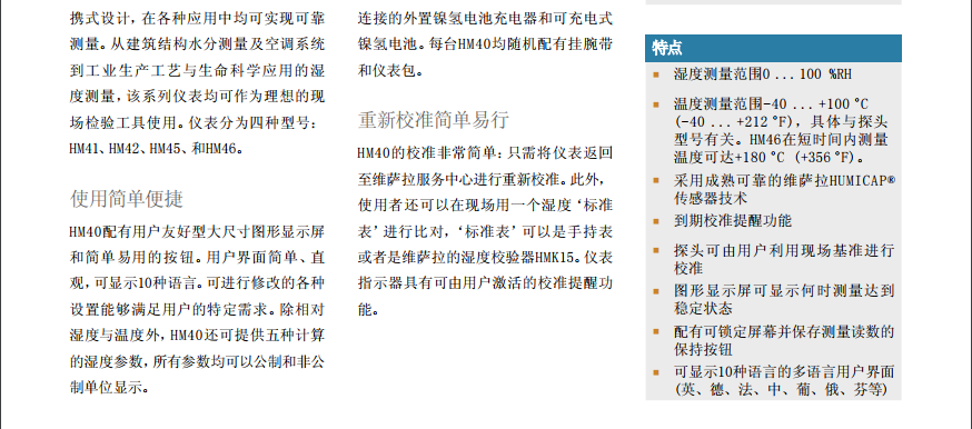 維薩拉HM40手持式濕度溫度儀采用性能可靠的維薩拉HUMICAP? 180R傳感器